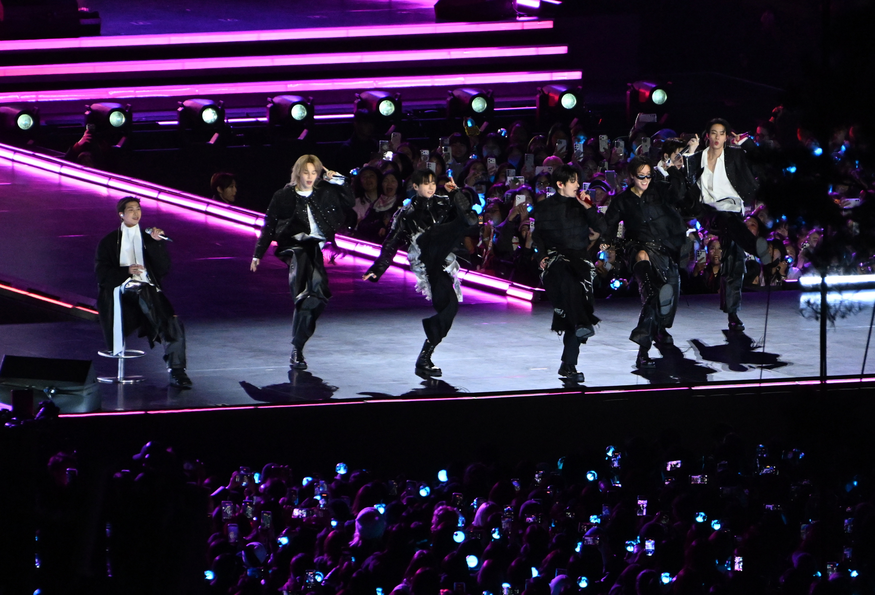 It marked the first time all seven members were seen onstage after halting music activities in October 2022.