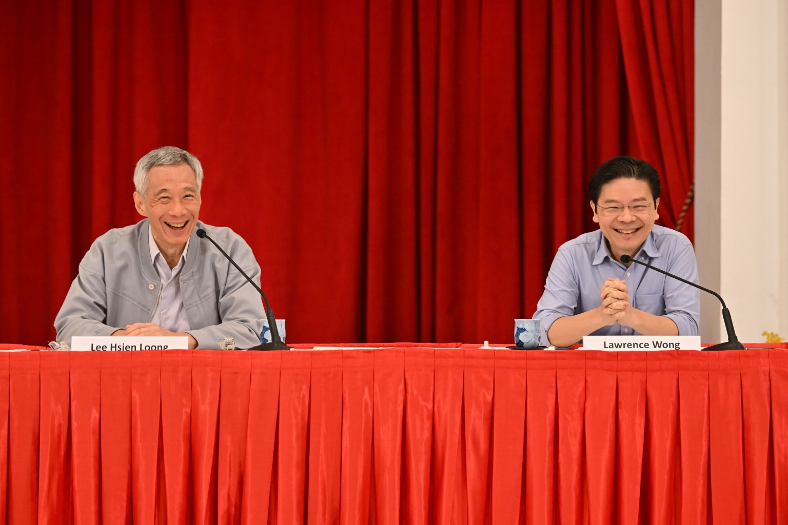 PM Lee Hsien Loong and Finance Minister Lawrence Wong during a press conference at the Istana on April 16, 2022.
