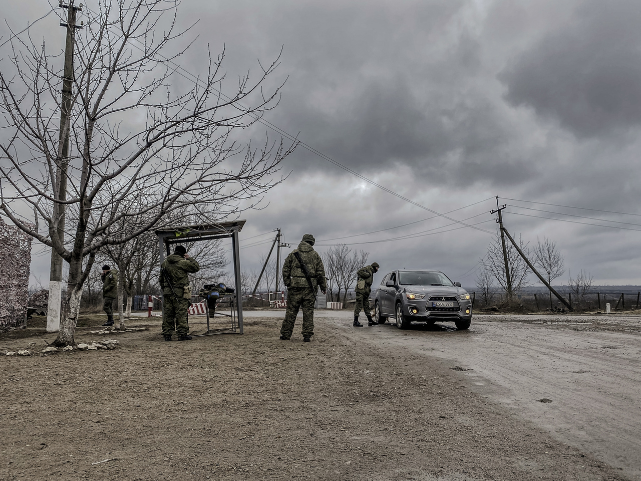 Russian troops at the entrance to the village of Varnita, in Transnistria, on March 4, 2022.