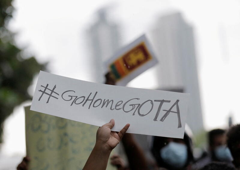 A person holds a placard demanding Sri Lanka's President Gotabaya Rajapaksa to resign on April 5, 2022.