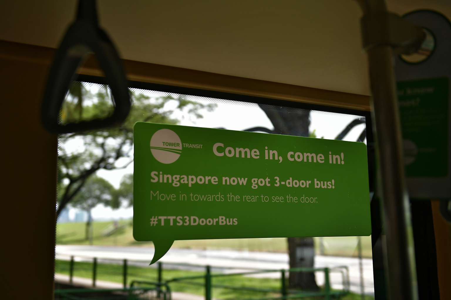 The Singlish signs on board the Tower Transit Singapore's new double-decker bus.