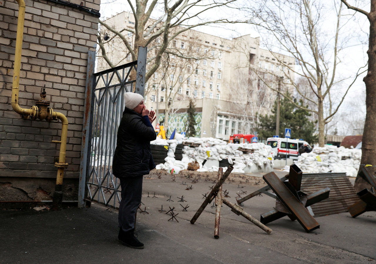 A woman waits for news of a relative at a government building destroyed by bombing in Mykolaiv, Ukraine, last month.