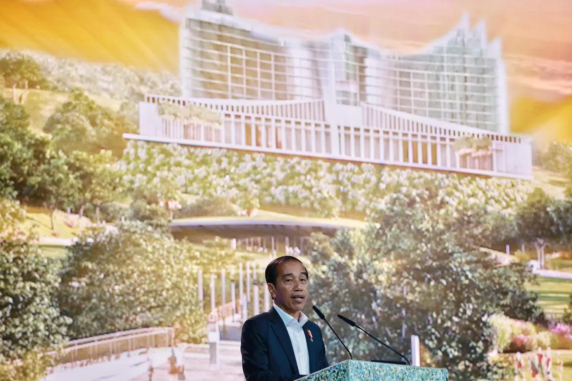 Indonesia President Joko Widodo speaking about the planned new capital Nusantara at Ecosperity Week in Singapore on June 7.
