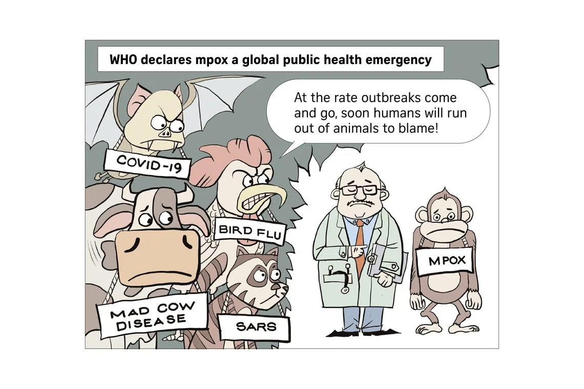 A Cartoonist’s View: Cel Gulapa, Aug 27, 2024Sign up now: Get ST's newsletters delivered to your inboxCel GulapaFollow topic:Outbreaks and epidemicsPublished Aug 27, 2024, 05:00 AMSee more onOutbreaks and epidemicsMpoxCartoonsCovid-19 - SingaporeST cartoonists' view