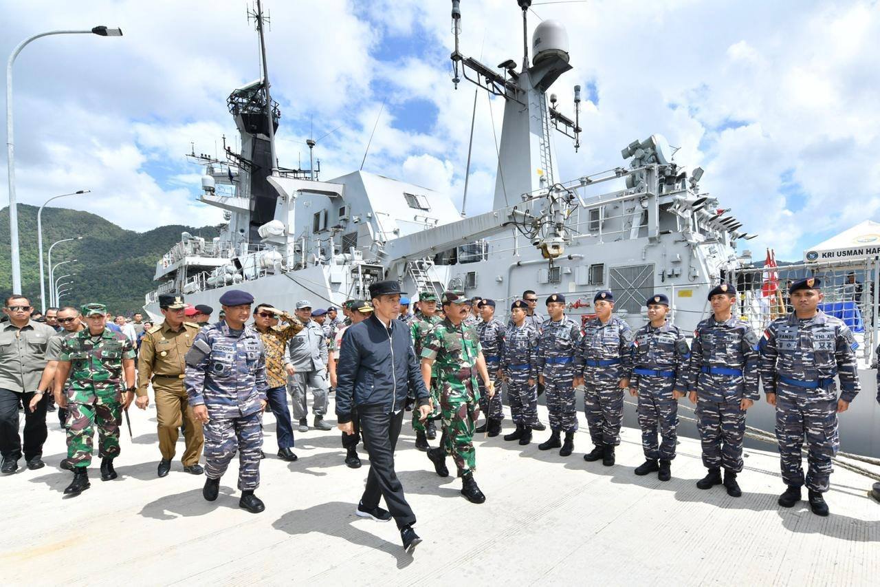 Indonesian President Joko Widodo visiting an Indonesian Navy ship at Selat Lampa Port on the Natuna islands in January 2020.