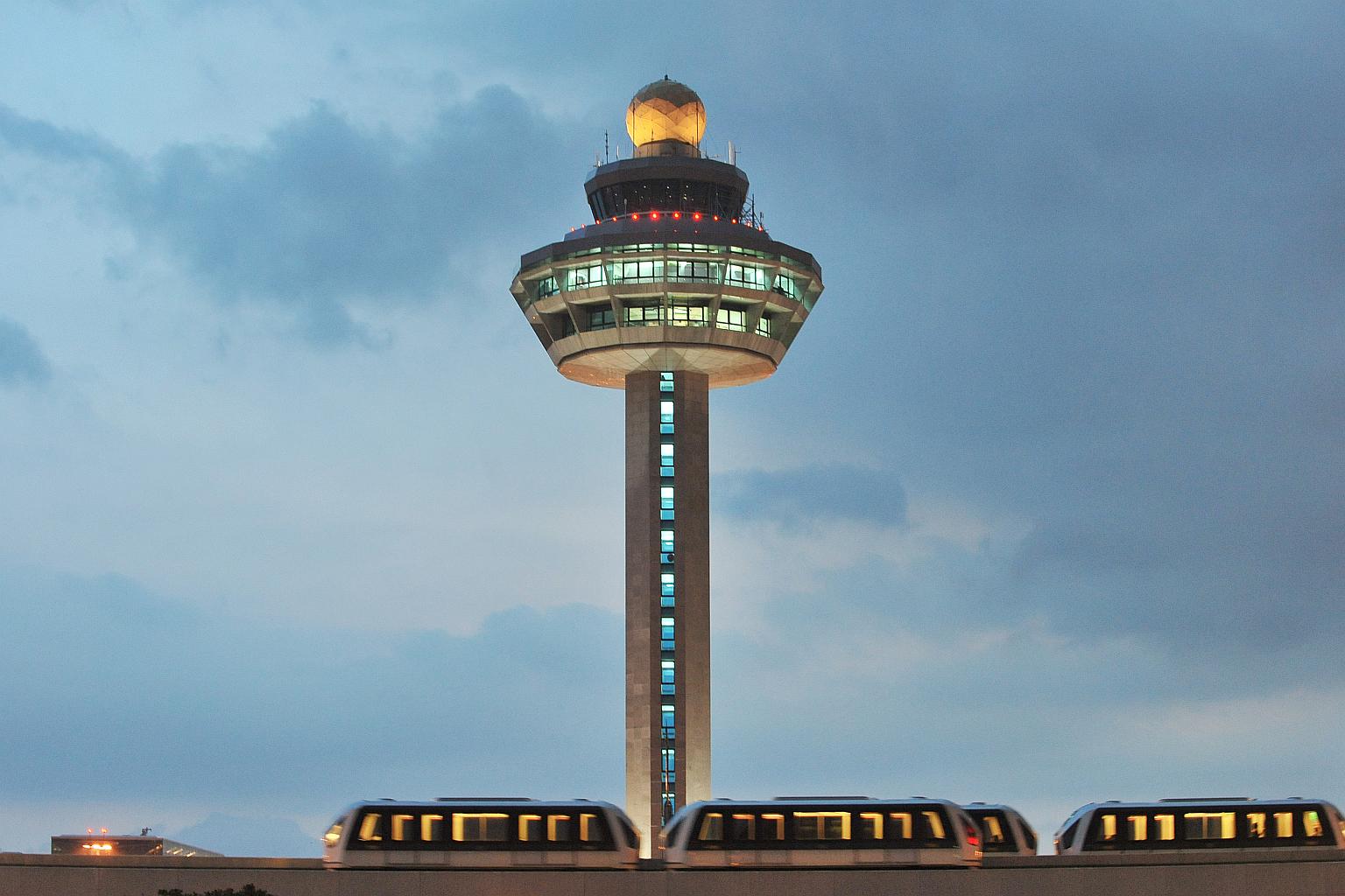 The Changi Airport control tower.