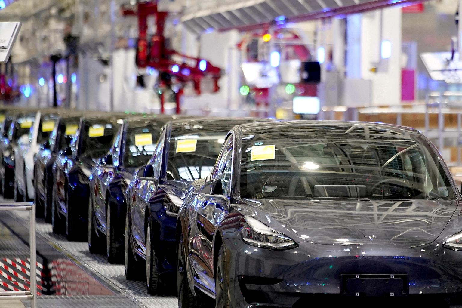 Tesla Model 3 vehicles at the carmaker’s factory in Shanghai in 2020.