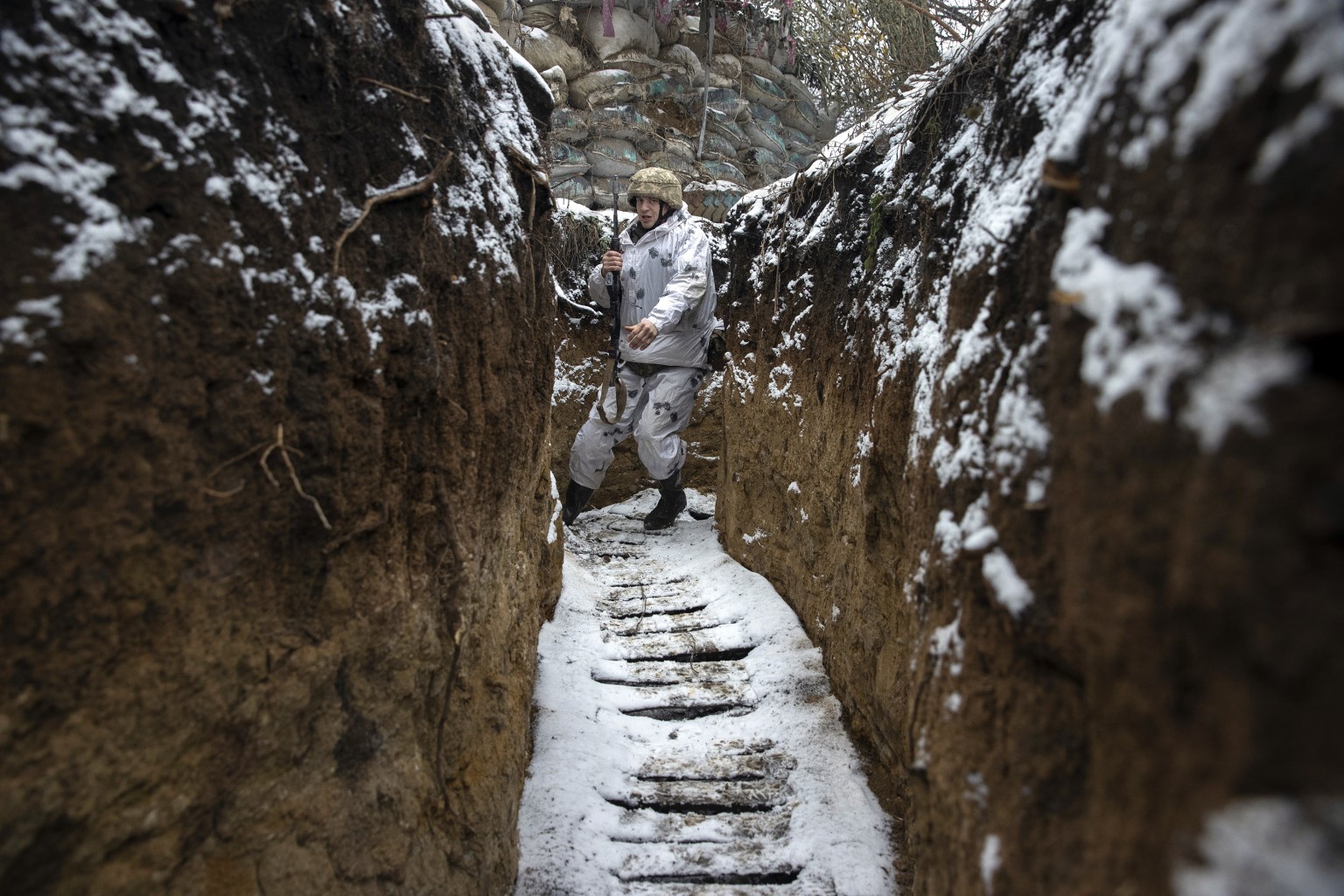 A member of the Ukrainian military in the Luhansk Oblast province of eastern Ukraine.