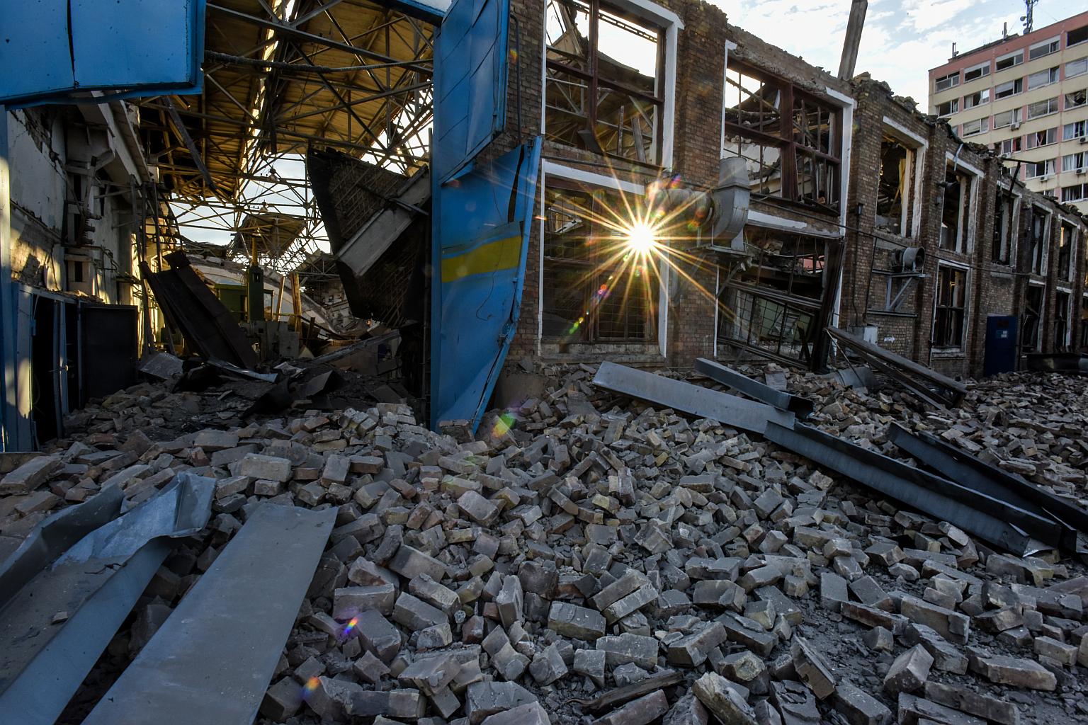 A car repair plant damaged by missile strikes in Kyiv, Ukraine, on June 5, 2022.
