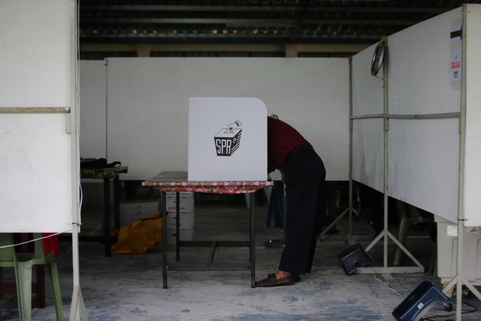 A voter at a polling booth during the Tanjung Piai by-election in Johor, on Nov 16, 2019.