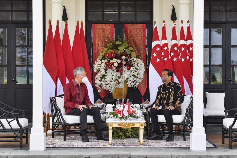 PM Lee Hsien Loong with Indonesian President Joko Widodo during the Leaders' Retreat in Bintan, Indonesia, on Jan 25, 2022.