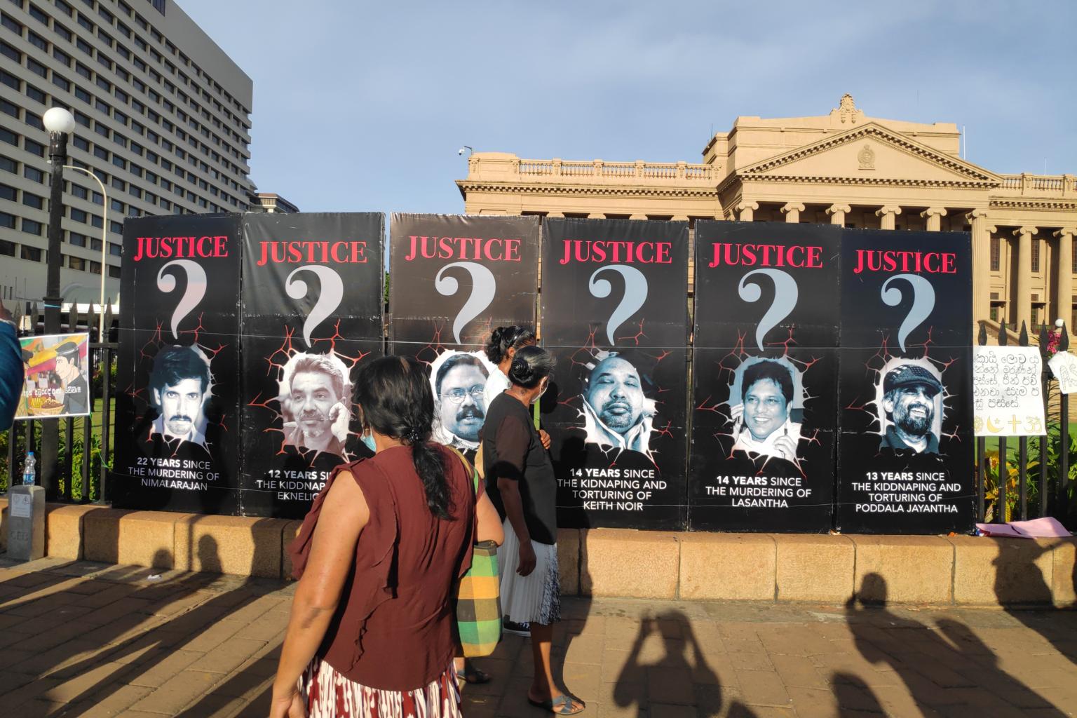 Posters in Colombo last month demanding justice for the disappearances and killings of journalists.
