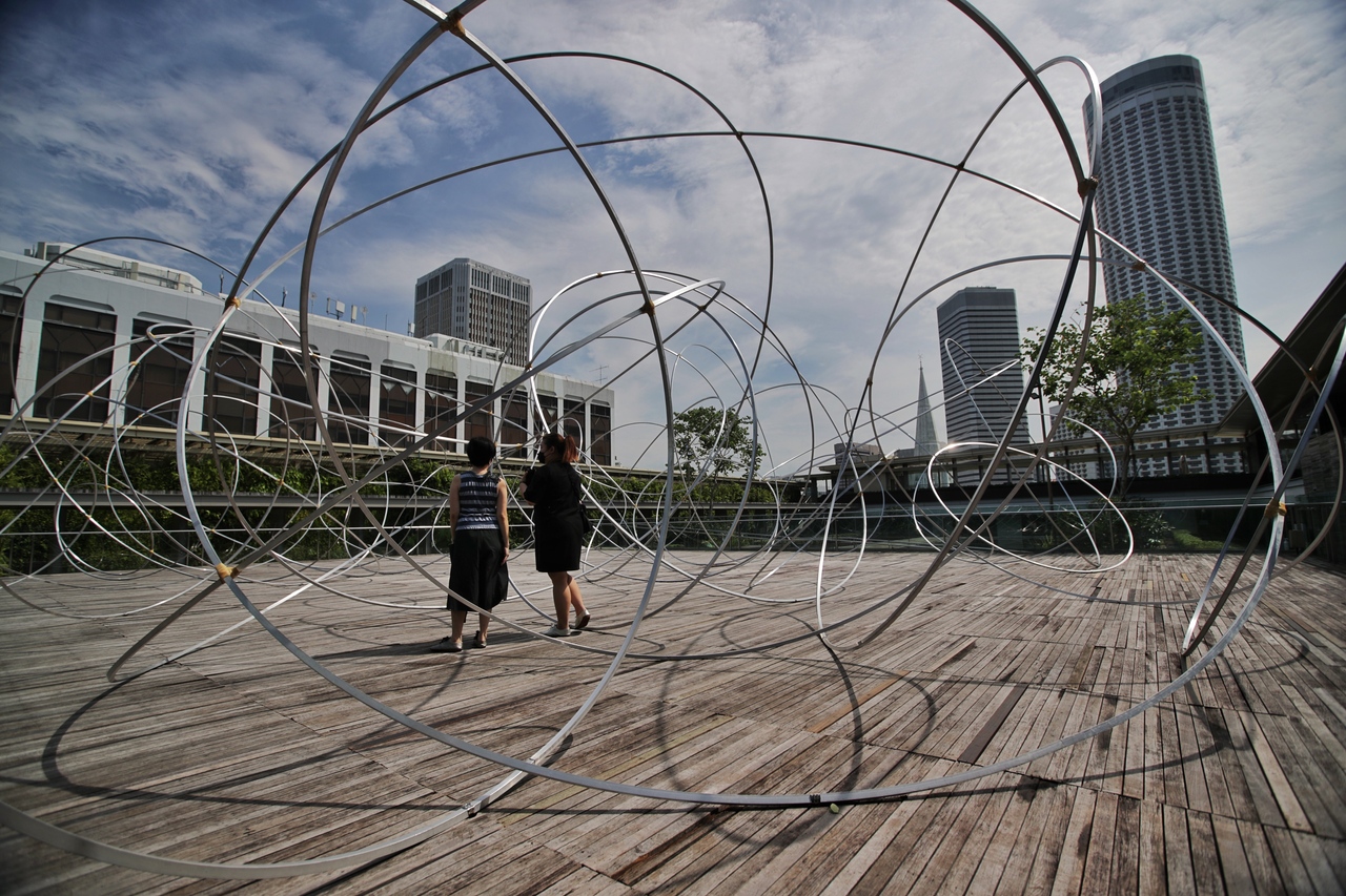 Sculptor Antony Gormley’s Horizon Field Singapore at the Ng Teng Fong Roof Garden.