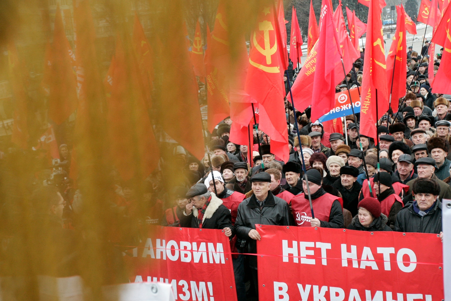 Communist supporters protesting against the decision of Ukraine's leaders' plans to join Nato in Donetsk, Ukraine, on Jan 31, 2009.