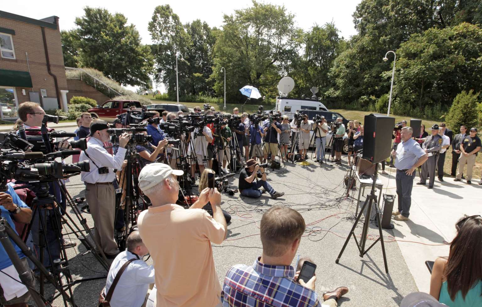 Virginia sheriff Bill Overton speaking to the press following the shooting of two employees of WDBJ TV during a live broadcast at Bridgewater Plaza on Smith Mountain Lake on Aug 26, 2015.