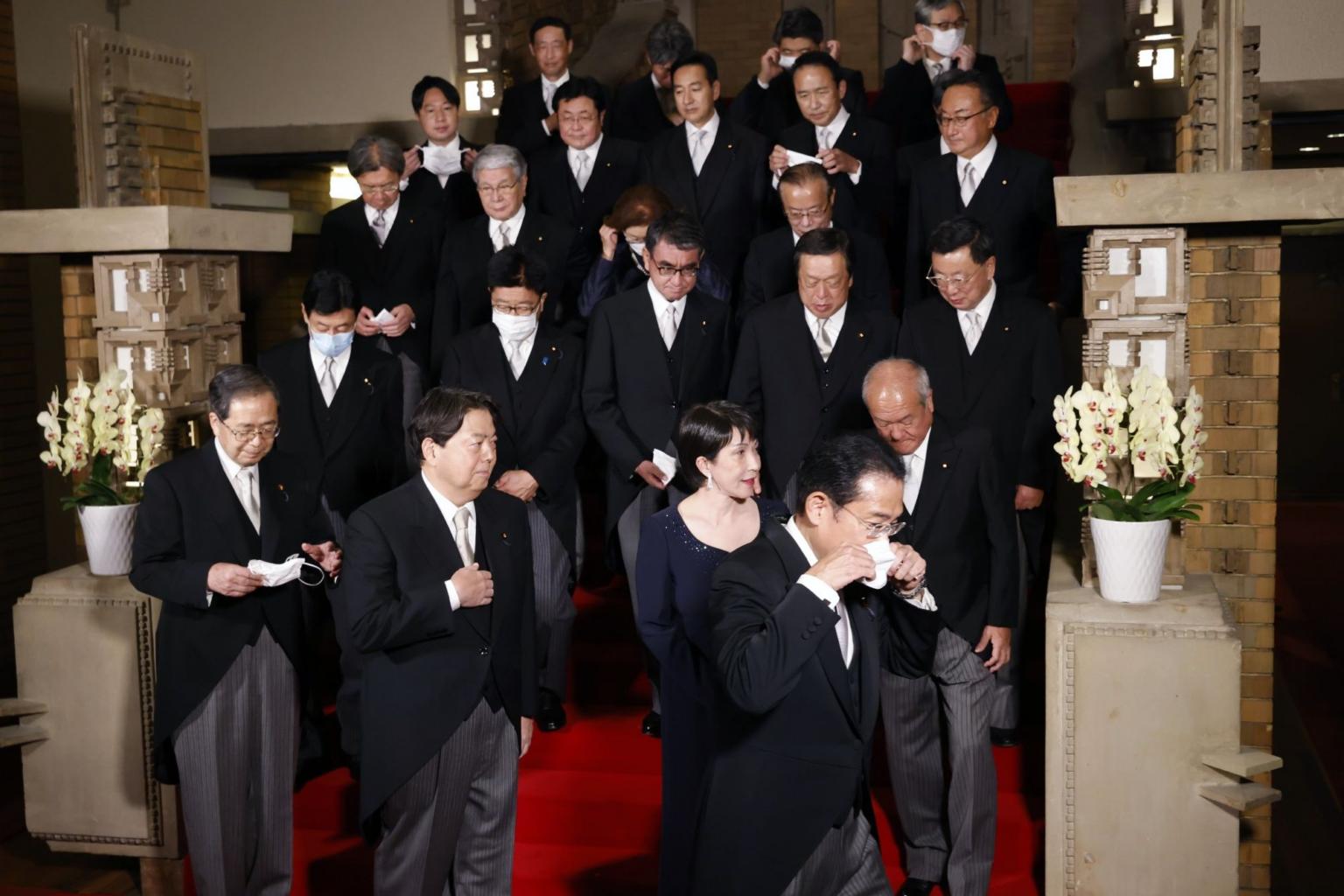Prime Minister Fumio Kishida (front) with his new Cabinet in Tokyo on Aug 10, 2022.