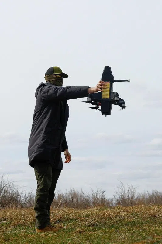 An interceptor drone being tested at an undisclosed location in Ukraine.