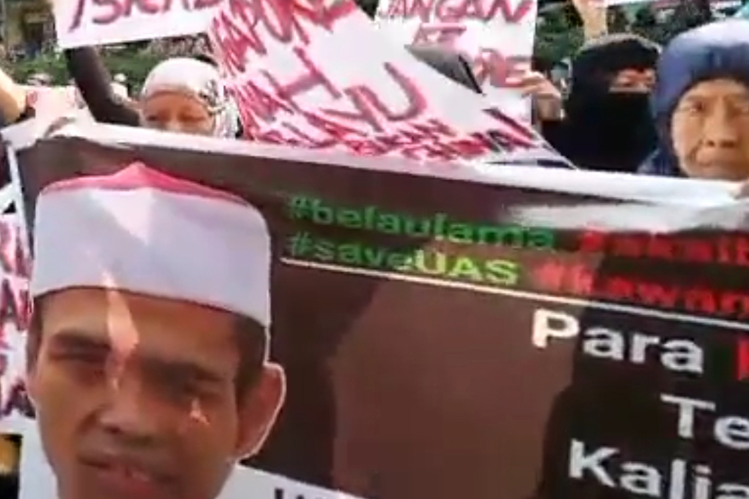Protesters in Indonesia demonstrating against Singapore’s denial of entry to Indonesian preacher Abdul Somad last week.