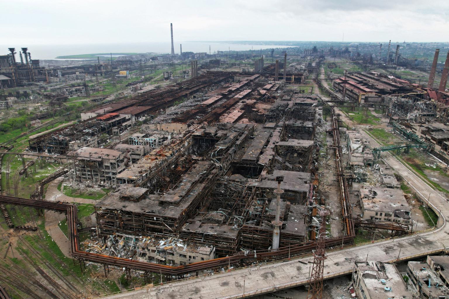 Destroyed facilities of Azovstal Iron and Steel Works in Mariupol, Ukraine, on May 22, 2022.