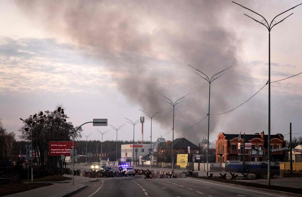 Smoke rising after an explosion in the Ukrainian capital of Kyiv on March 18, 2022.