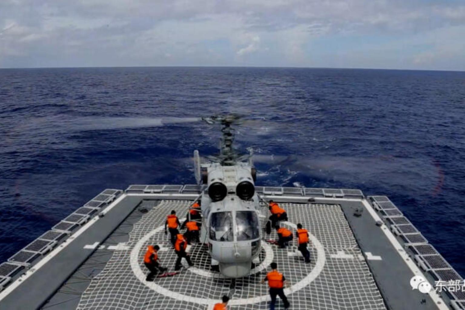 A PLA helicopter taking part in military exercises in the waters near Taiwan on Aug 8, 2022.