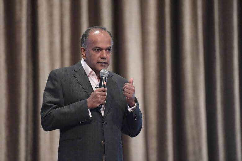Home Affairs and Law Minister K. Shanmugam speaking at the Institute of Policy Studies forum on Friday (Sept 8). He had cited the case of two foreign Christian preachers who were barred from entering Singapore due to their Islamophobic teachings.