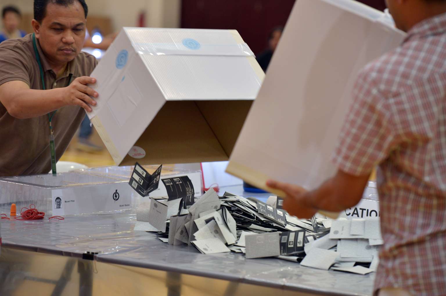 Ballot papers at a counting centre during the Bukit Batok by-election on May 7, 2016.