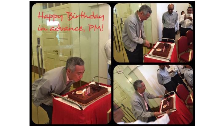 Minister for Social and Family Development Tan Chuan-Jin posted pictures of the celebration on Facebook on Wednesday (Feb 3), writing: "Since PM Lee Hsien Loong will be away next week, we decided to prematurely age him by celebrating his birthday during our pre-cabinet lunch meeting."
