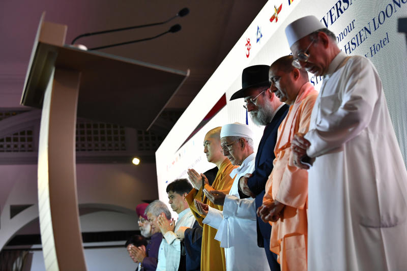 In a photo taken on Aug 26, leaders and representatives of different faiths from Singapore's Inter-Religious Organisation conduct a silent interfaith prayer.