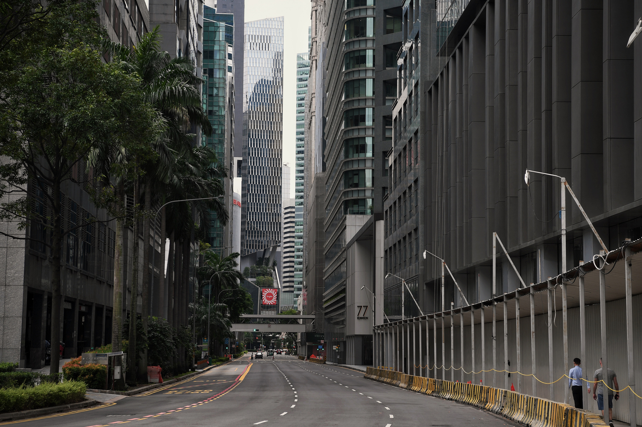 An almost empty Central Business District during the circuit breaker on May 27, 2020.