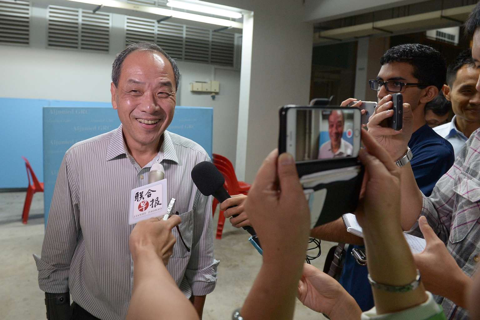 WP chief Low Thia Khiang taking questions from the media at the sidelines of his Meet-the-People Session on June 2.