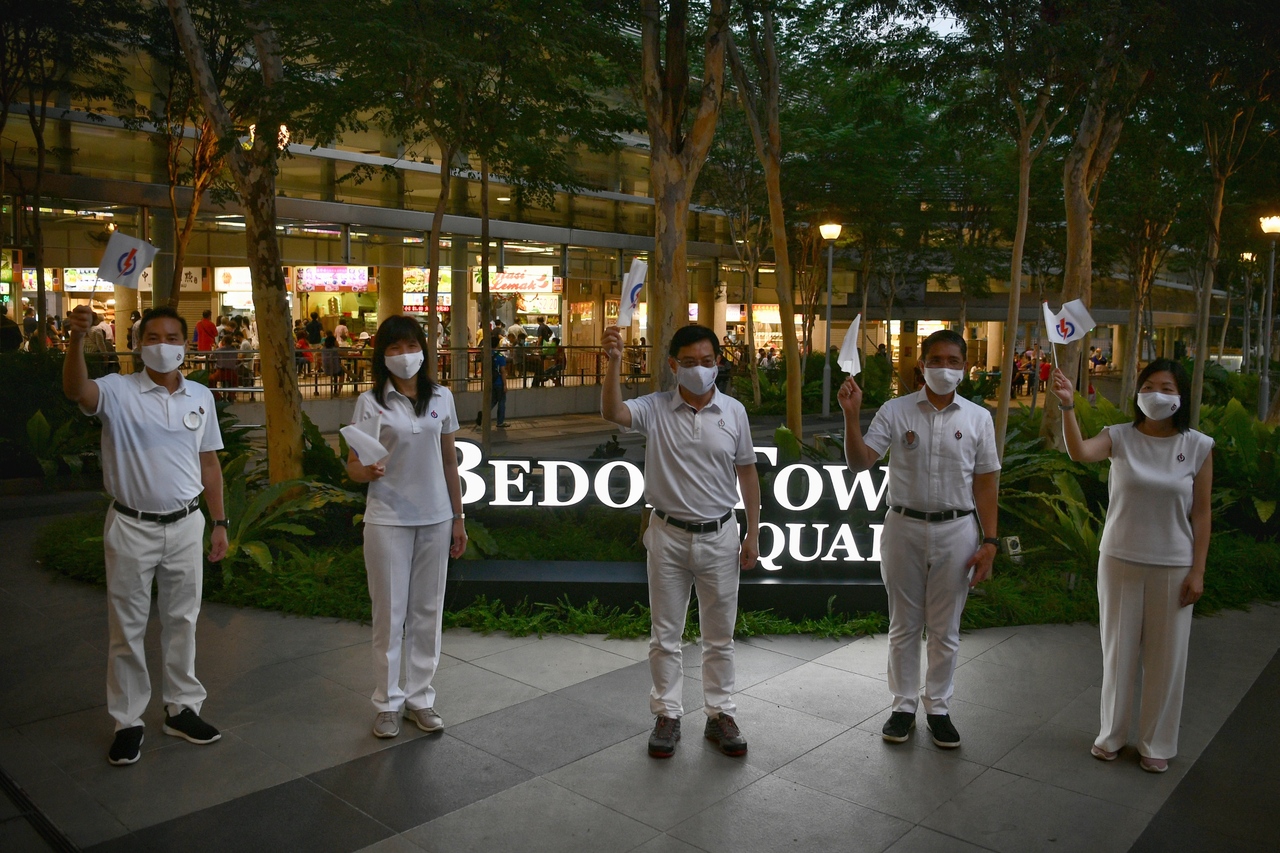 Deputy Prime Minister Heng Swee Keat (centre) with his East Coast GRC team members (from left) Tan Kiat How, Jessica Tan, Maliki Osman and Cheryl Chan.
