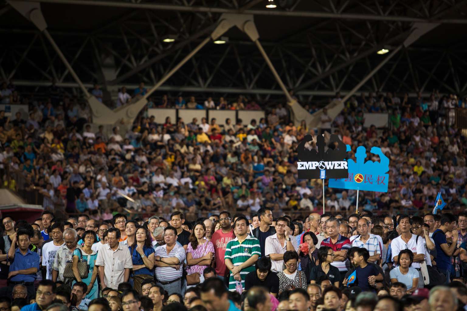 Supporters of the Worker's Party attend a campaign rally at Yishun Stadium on Sept 4, 2015. The stadium is listed as one of the 18 designated assembly centres on Polling Day (Sept 11).