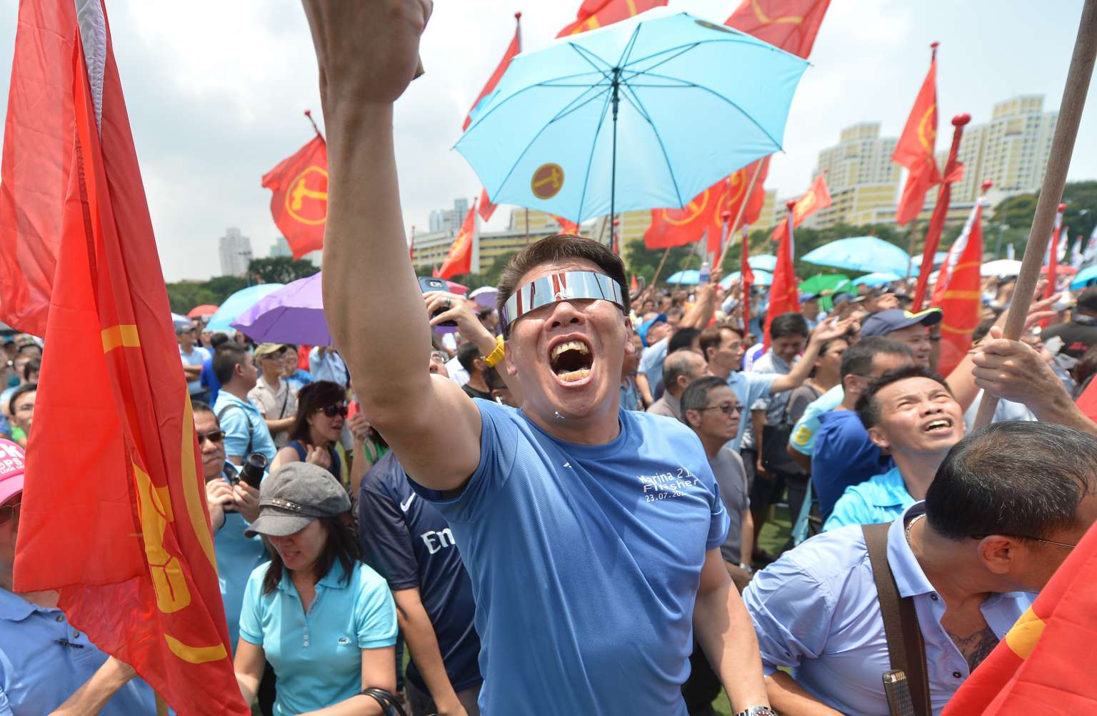Workers' Party supporters at Raffles Institution on Sept 1, 2015.