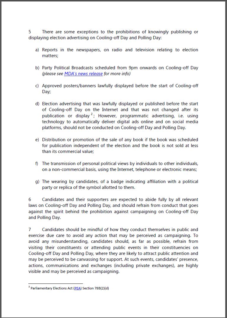 On Cooling-off Day, campaigning is disallowed and election advertising must not be published or displayed.