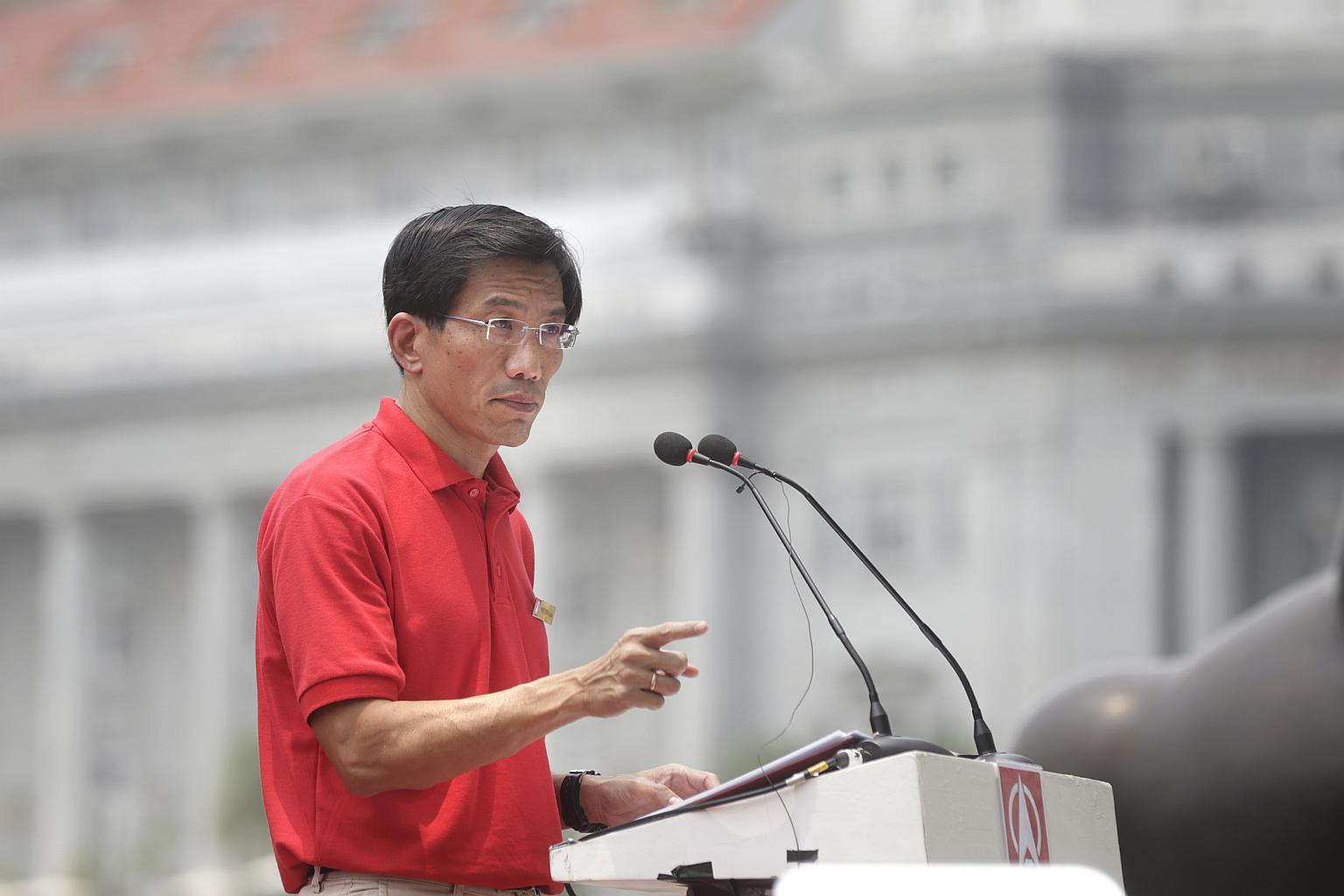 Dr Chee speaking during a lunchtime rally at UOB Plaza Promenade on Sept 7, 2015.