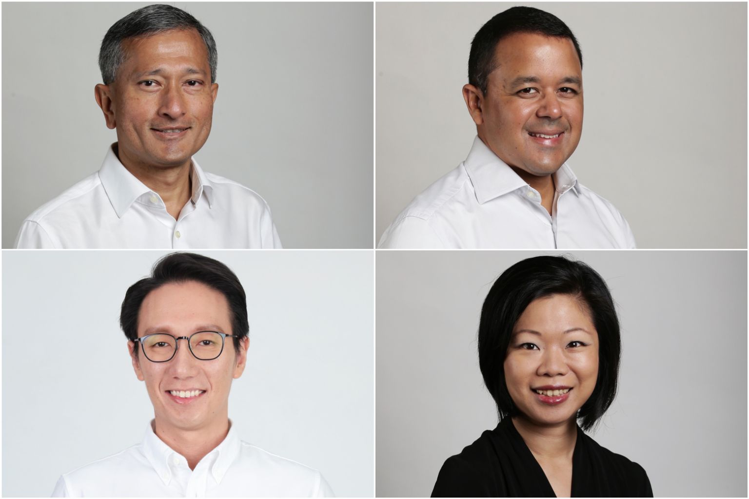 The PAP's Holland-Bukit Timah GRC candidates (clockwise from top left) Vivian Balakrishnan, Christopher De Souza, Sim Ann and Edward Chia.