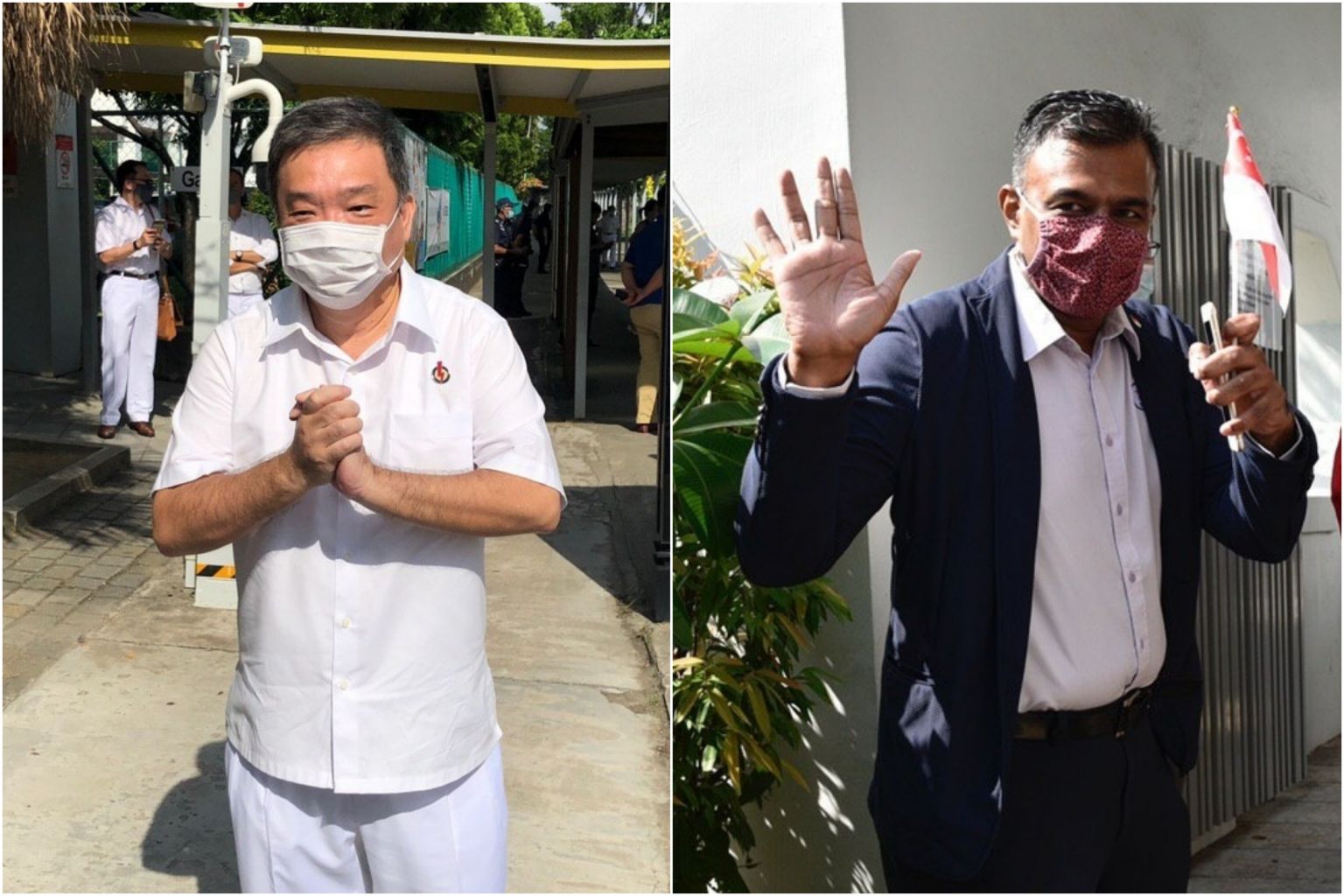 PAP's Potong Pasir SMC candidate Sitoh Yih Pin (left) and SPP chairman Jose Raymond at Kong Hwa School nomination centre on June 30, 2020.