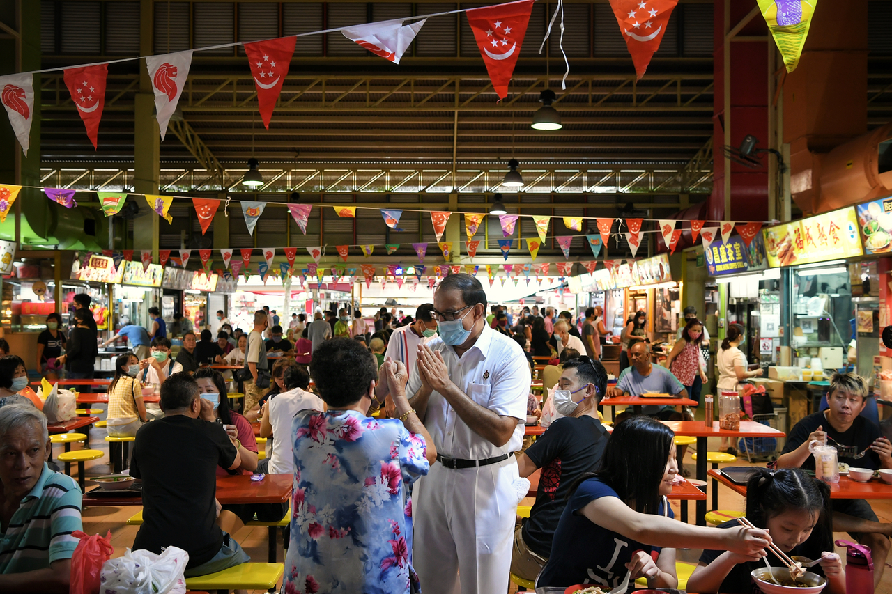 Minister for Communications and Information S. Iswaran during a walkabout at West Coast Market Square on July 12, 2020.