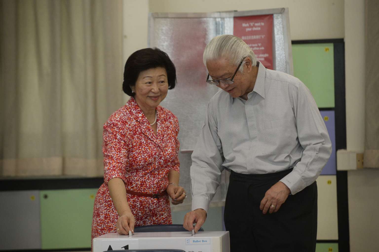 President Tony Tan and his wife, Mary, cast their vote at Nanyang Girls' High School.