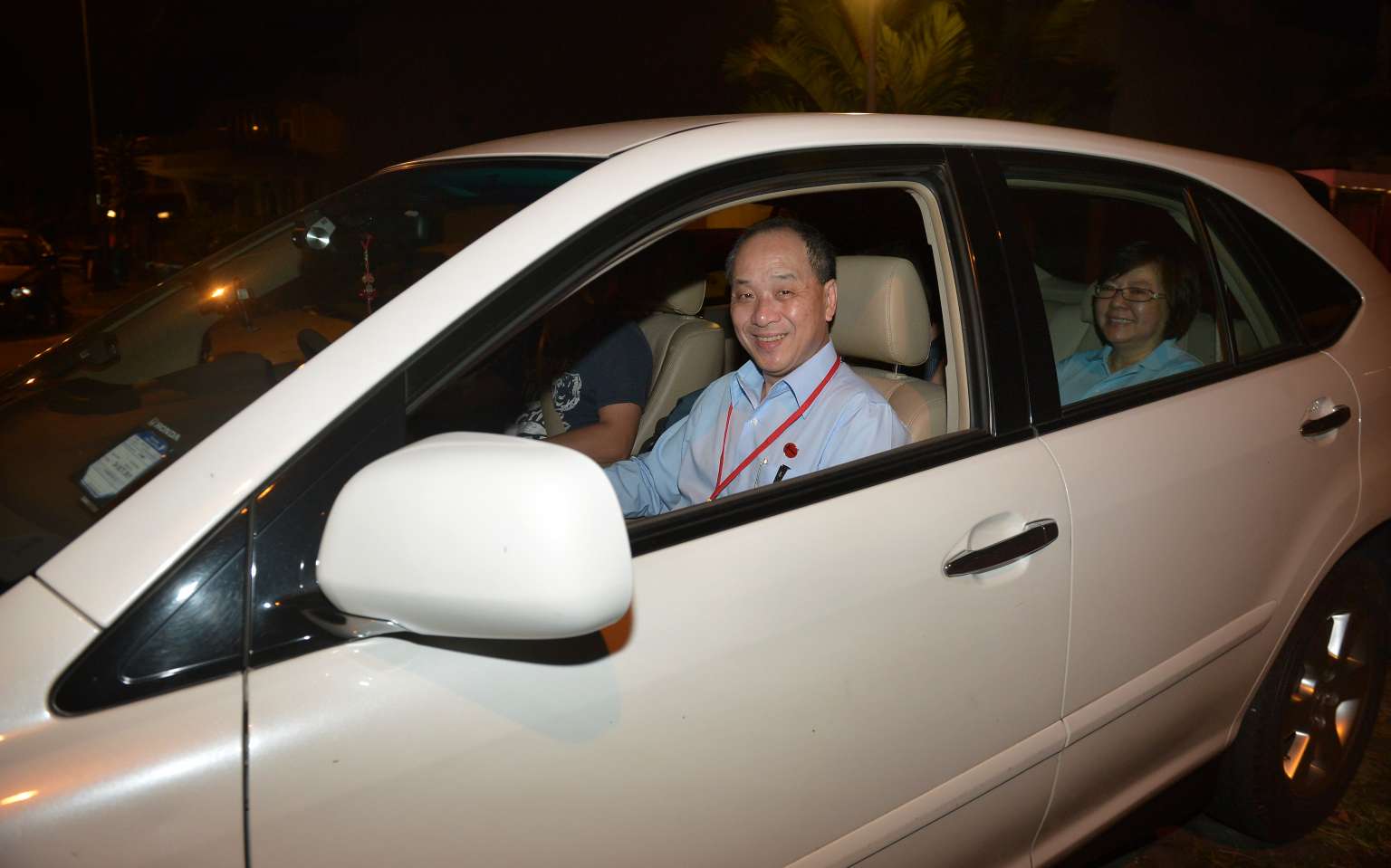 Workers' Party chief Low Thia Kiang leaving his home on Polling Day.