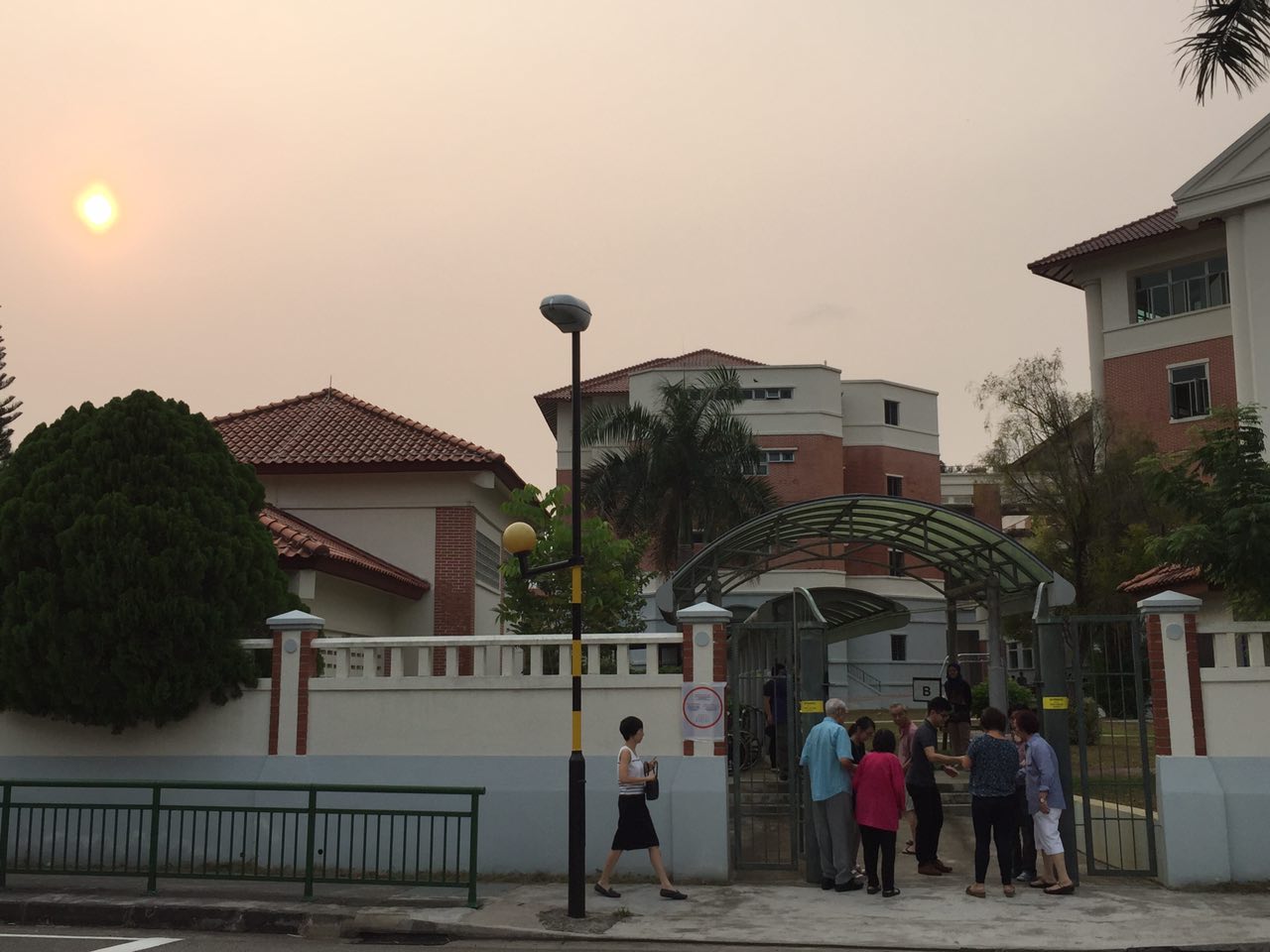 Singaporeans streaming into Nanyang Girls' High School to cast their votes.