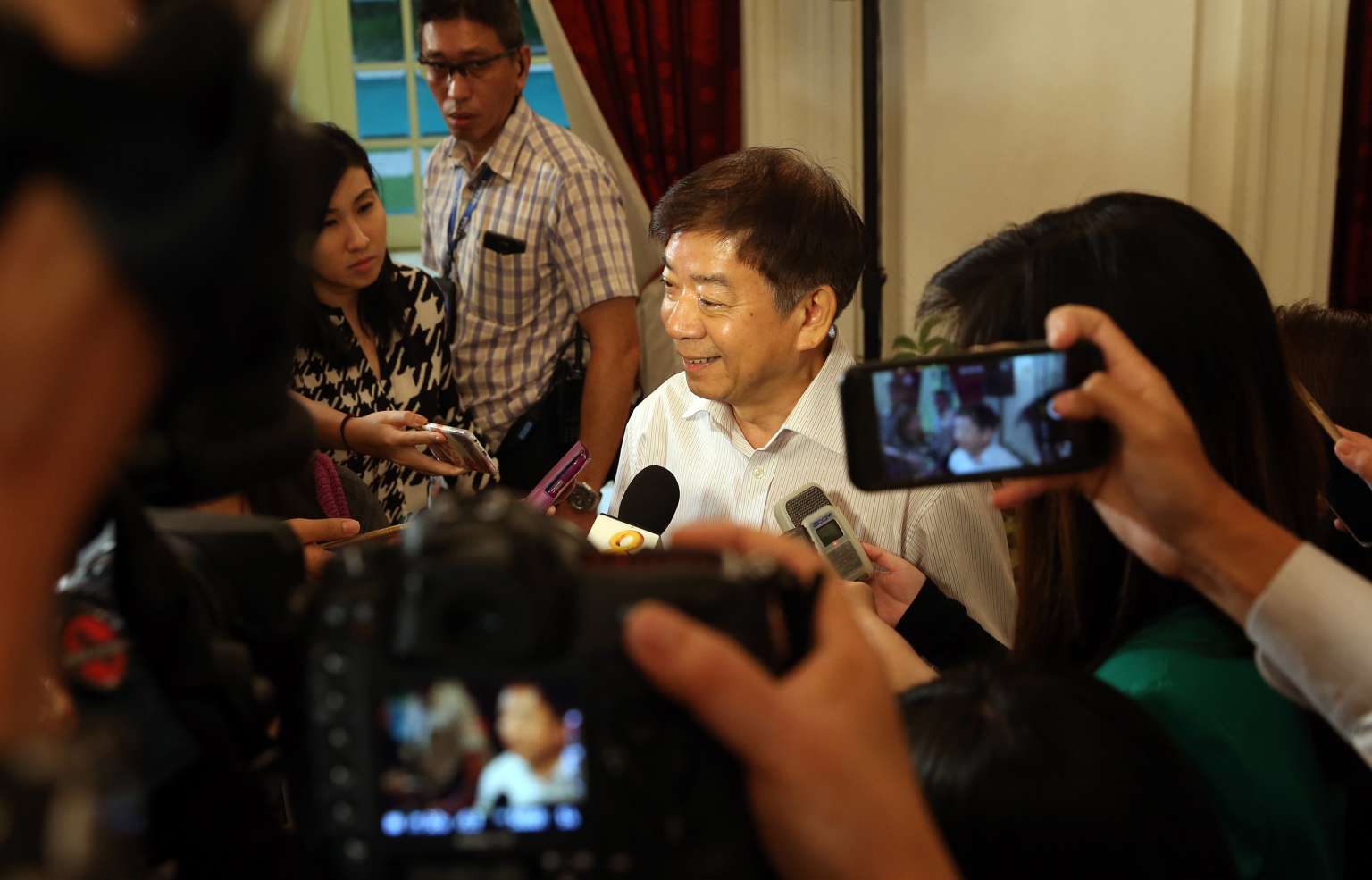 Mr Khaw Boon Wan speaking to the media after a press conference in the Istana on Sept 28, 2015, after he was appointed the new Minister for Transport.