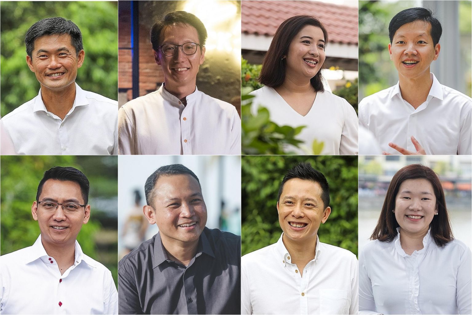 (Clockwise, from top left) Desmond Tan Kok Ming, Edward Chia Bing Hui, Nadia Ahmad Samdin, Ivan Lim Shaw Chuan, Hany Soh Hui Bin, Yip Hon Weng, Mohd Fahmi Aliman and Don Wee Boon Hong.