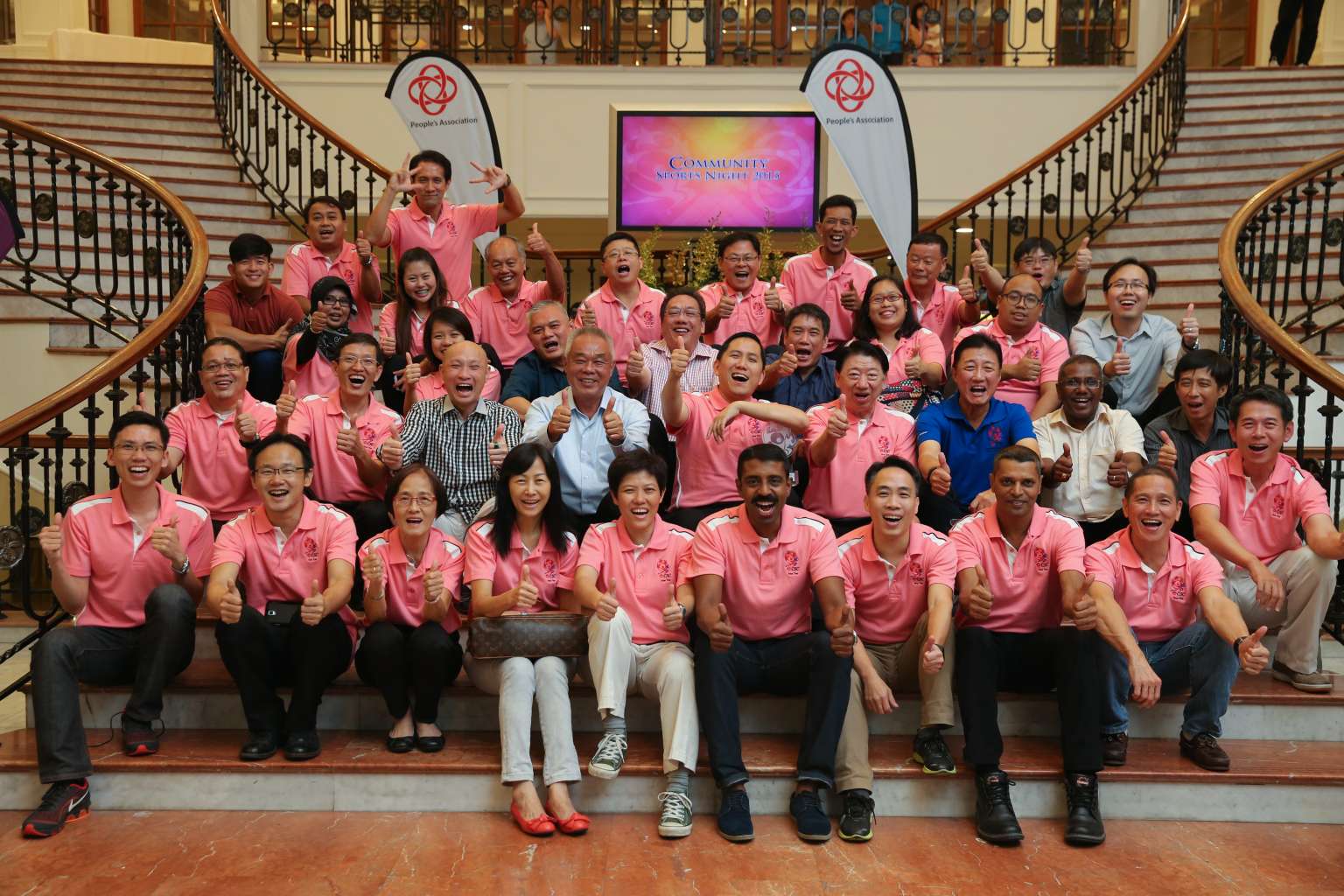 Alex Yam (second row, fifth from left) in a group photograph with his Yew Tee team at a Peoples' Association event held at the Orchid Country Club.