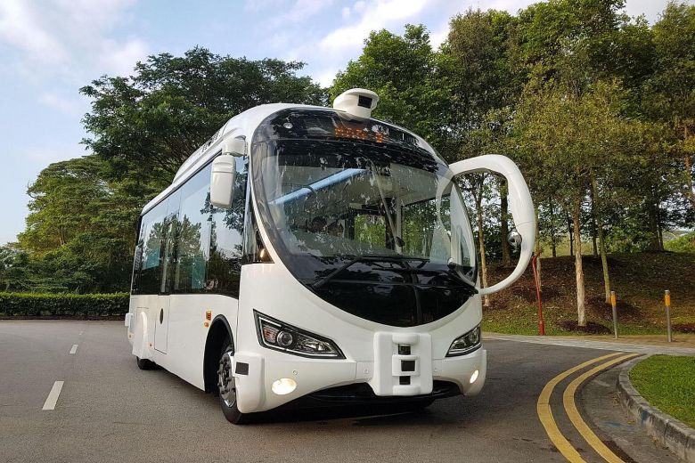 A driverless shuttle being tested at Tanjong Beach on Sentosa.