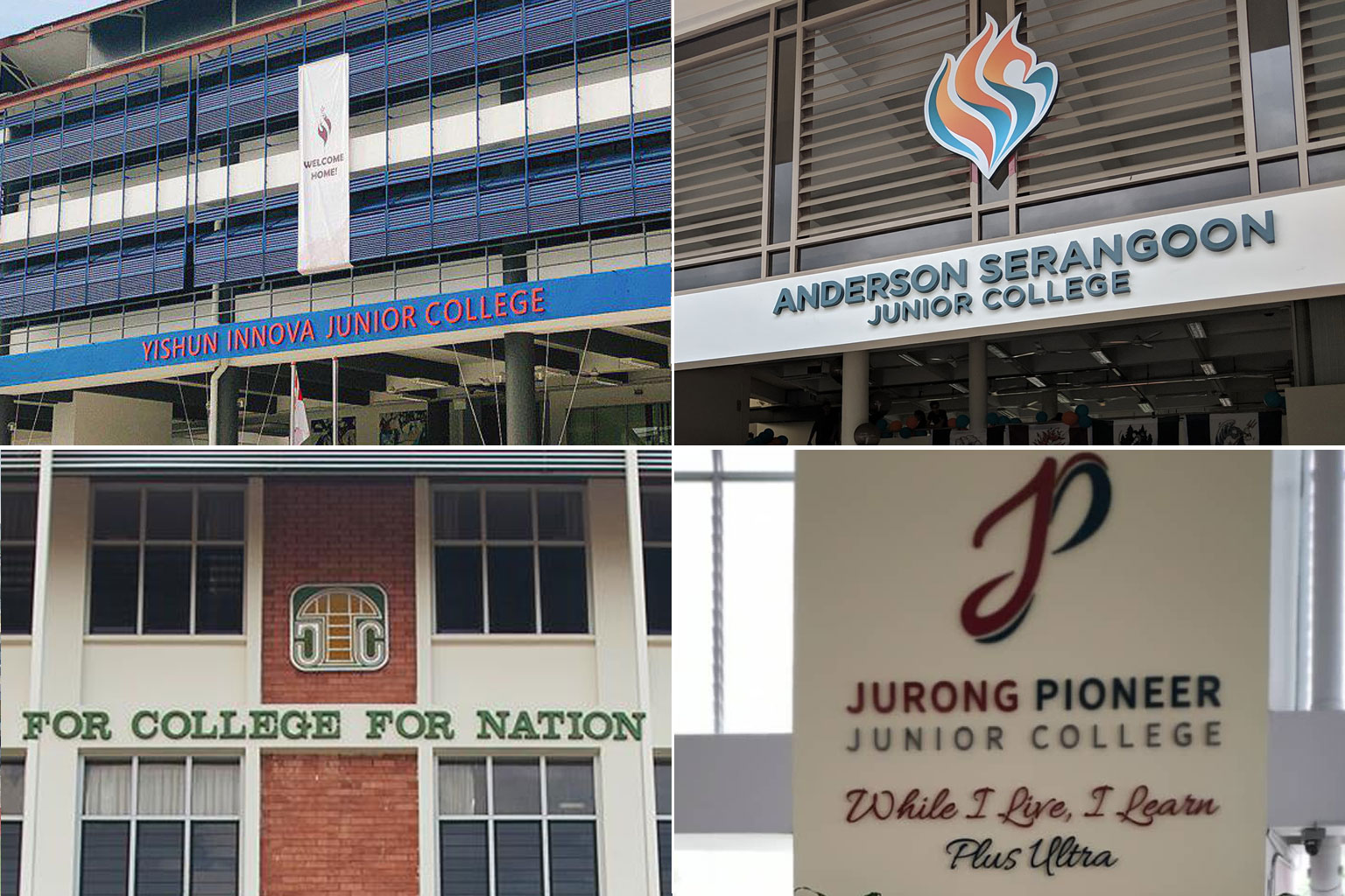 (Clockwise from top left) Yishun Innova Junior College, Anderson Serangoon Junior College, Jurong Pioneer Junior College and Temasek Junior College.