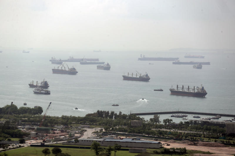 Ships seen in the waters off Singapore from Marina South Pier, on April 22, 2019.