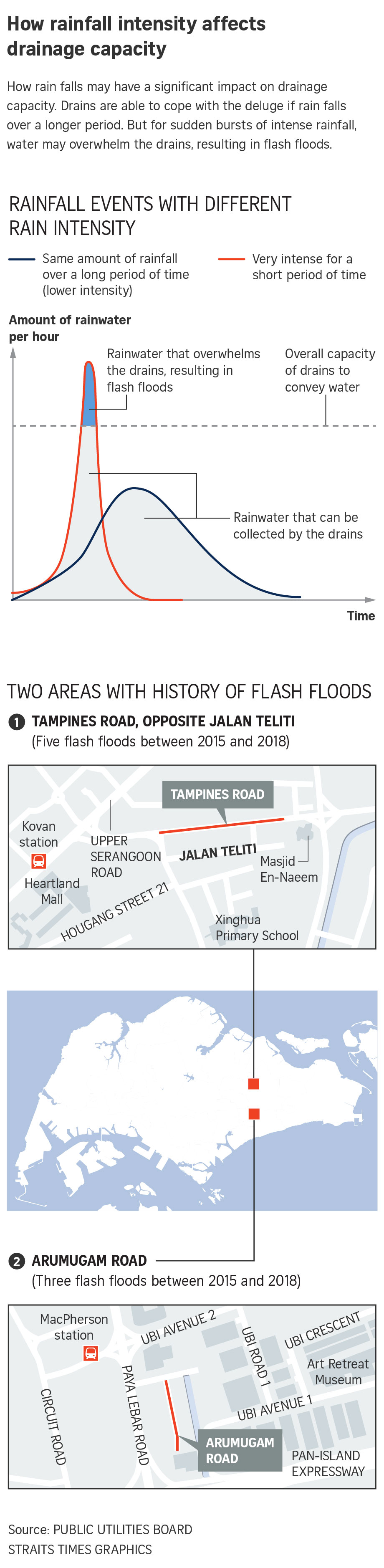 But, Mr Masagos cautioned, it is not feasible to build drains to accommodate every extreme rainfall event as this would require massive land take and much higher costs.