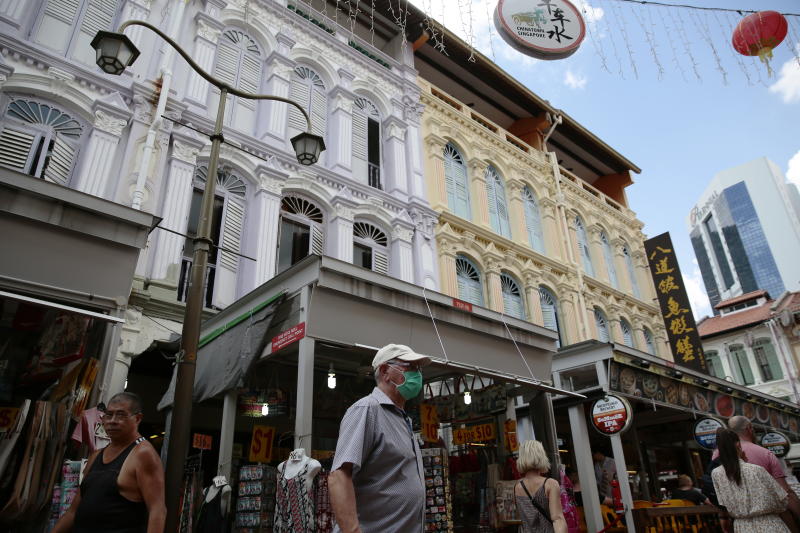 A man wears a mask as he walks around the Chinatown district of Singapore on Feb 17, 2020.